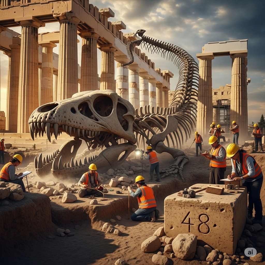 In the heart of ancient Athens, a colossal reptilian skeleton, a “Forbidden Relic,” has been unearthed beneath the Parthenon.