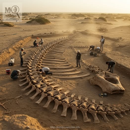 In the midst of an arid desert landscape, a team of archaeologists has uncovered a skeleton of astonishing proportions—its ribcage and spine sprawling across the sand like the remnants of some forgotten leviathan. At first glance, the structure bears a striking resemblance to marine life, with vertebrae and rib formations that echo those of great sea creatures. Yet, subtle details in its skeletal form suggest something far more enigmatic, sparking heated debates within the scientific community and beyond.