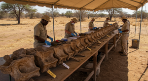 In a secluded research camp tucked away in the African wilderness, scientists have begun meticulously studying a series of colossal vertebrae unlike anything previously documented. Each bone, carefully arranged in sequence and marked with numbered tags, tells a story that conventional science struggles to explain. The sheer size of the vertebrae—far exceeding that of whales, elephants, or even the largest known dinosaurs—has sparked a wave of speculation that stretches from academic halls to the wider public imagination.