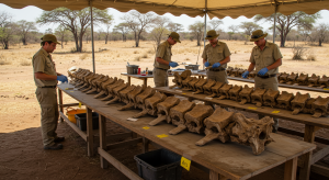 Researchers on-site describe the bones as “baffling,” noting that their structure bears some resemblance to marine vertebrates but with modifications suggesting adaptation to land-based locomotion. This hybrid morphology defies standard classification, raising the unsettling possibility that the remains may belong to a creature from an undocumented branch of evolution. Some paleontologists cautiously suggest it could be a prehistoric giant species erased by extinction events, while others acknowledge the parallels with myths of colossal beings found in African folklore.